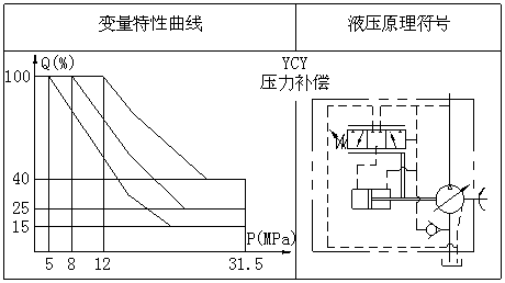 調(diào)節(jié)流量特性時(shí),可先將限位螺釘擰至上端,根據(jù)所需的流量和壓力變化范圍,調(diào)節(jié)彈簧套,使其流量開始發(fā)生變化時(shí)的初始壓力符合要求,然后將限位螺釘擰至終級壓力時(shí)的流量不再發(fā)生變化,其中間的流量與壓力變化關(guān)系由泵的本身設(shè)計(jì)所決定。