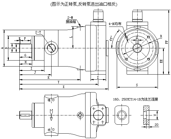 CY14 型軸向柱塞泵是采用配油盤配油、缸體旋轉(zhuǎn)的軸向柱塞泵。由于滑靴和變量頭之間、配油盤和缸體之間采用了液壓靜力平衡結(jié)構(gòu),因而與其它類型的泵相比,具有結(jié)構(gòu)簡單、體積小、效率高、壽命長、重量輕、自吸能力強(qiáng)等優(yōu)點(diǎn)。