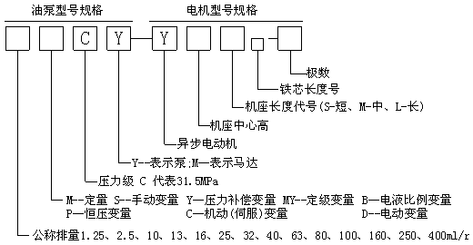 CY-Y系列油泵電機組具有CY14-1B系列油泵相同的工作參數(shù)和變量形式,可根據(jù)用戶需要,配以不同功率的電機組成相應(yīng)規(guī)格型號的油泵電機組。